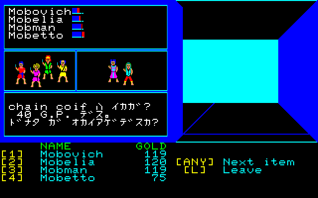 (你如何定义“RPG”?) 《Old Gamers History》系列书籍的作者谈到:”日本的第一款CRPG到底是哪款,人们已经辩论过许多,但没有明确的答案。主要原因就是因为很多游戏我们不知道具体发行日期,其次,RPG种类又很难合理界定。” 再拿一款经常被看作第一款JRPG的游戏举例,《龙与公主》(Dragon and Princess、ドラゴンアンドプリンセス),这款游戏有小队系统和回合制策略战斗,但它的核心仍然同文字冒险游戏脱不开关系。除此之外,哪怕自称是RPG的早期日本游戏,概念上其实也很暧昧,有的缺乏属性、升级、职业等传统意义上的RPG元素。 《梦幻仙境》(等会儿也会谈到这款游戏)的制作人内藤时浩在《The Untold History of Japanese Game Developers Vol. 2》一书中也说: 当时日本人可能根本没把RPG真正独立作为一个种类,我怀疑这点,主要是因为那时候的开发者只是把RPG的皮相和气氛作为基本要素,然后把自己感觉合适的玩法塞到里头,就我自己来说,我没用过Apple Ⅱ,所以当然也没机会真正接触到《巫术》和《创世纪》。 另外还有一点值得注意,因为日本早期的RPG同文字冒险游戏脱不开关系,而日本的许多文字冒险游戏又有色情传统,这就导致许多原始RPG也会那么做…… 还是拿光荣举例,《团地妻的诱惑》(Seduction of Condominium Wives),你从游戏名中就能读出一些东西,它讲述了一个卖避孕套的男人拜访住宅区,亲自去敲每家每户的门,还在走廊上同怪物战斗的故事。 再比如“浓眉大眼”的日本Falcom,他们有一个叫做《帕诺拉玛岛》(Panorama Island、ぱのらま島)的RPG,下面是游戏的截图,好像有处亮点,却也没打码的必要……