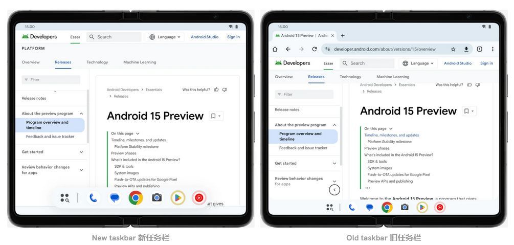 IT之家 8 月 6 日消息,欧博科技媒体 Android Authority 今天(8 月 6 日)发布博文,报道称谷歌计划在安卓 15 系统中,为手机带来平板上的任务栏体验。 安卓任务栏 谷歌安卓任务栏最早追溯到 2022 年发布的安卓 12L 版本中,欧博娱乐这是针对大屏设备而开发的安卓版本。 在安卓 12L 版本中,安卓任务栏位于屏幕底部,可以放置应用的应用,欧博allbet占据整个屏幕宽度,且无法隐藏。 谷歌在安卓 13 系统中,进一步优化了任务栏,欧博百家乐可以通过长按空白处来隐藏。 谷歌在安卓 13 的第 2 个 QPR 版本中,将任务栏改成了瞬时任务栏,即只在屏幕上短暂显示。当用户向上滑动导航手柄时,新的瞬时任务栏会短暂显示,如果用户不与之互动,任务栏会在几秒钟后消失。 而在安卓 15 系统中,谷歌计划添加新的选项,由用户自由选择新旧两个版本。 安卓 15 为手机引入 tiny 任务栏 消息源还表示谷歌在安卓 15 系统中带来了“tiny”任务栏功能,IT之家附上演示视频如下: 从视频来看,谷歌的“tiny”任务栏和面向大屏幕设备的完整版任务栏完全相同,而且不需要调整文本和显示比例。 |