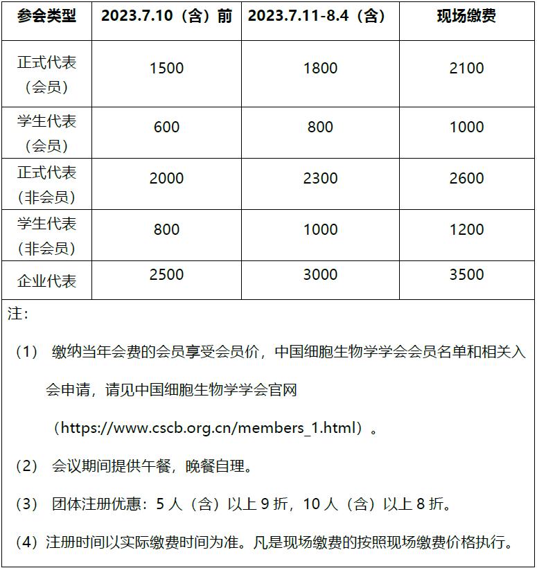 九、会议注册 1、请于2023年8月4日之前在官网注册:https://2023CSCCR.sciconf.cn (交费成功视为注册成功) 2 、注册费标准(含会议费、资料费;餐宿费、交通费自理):